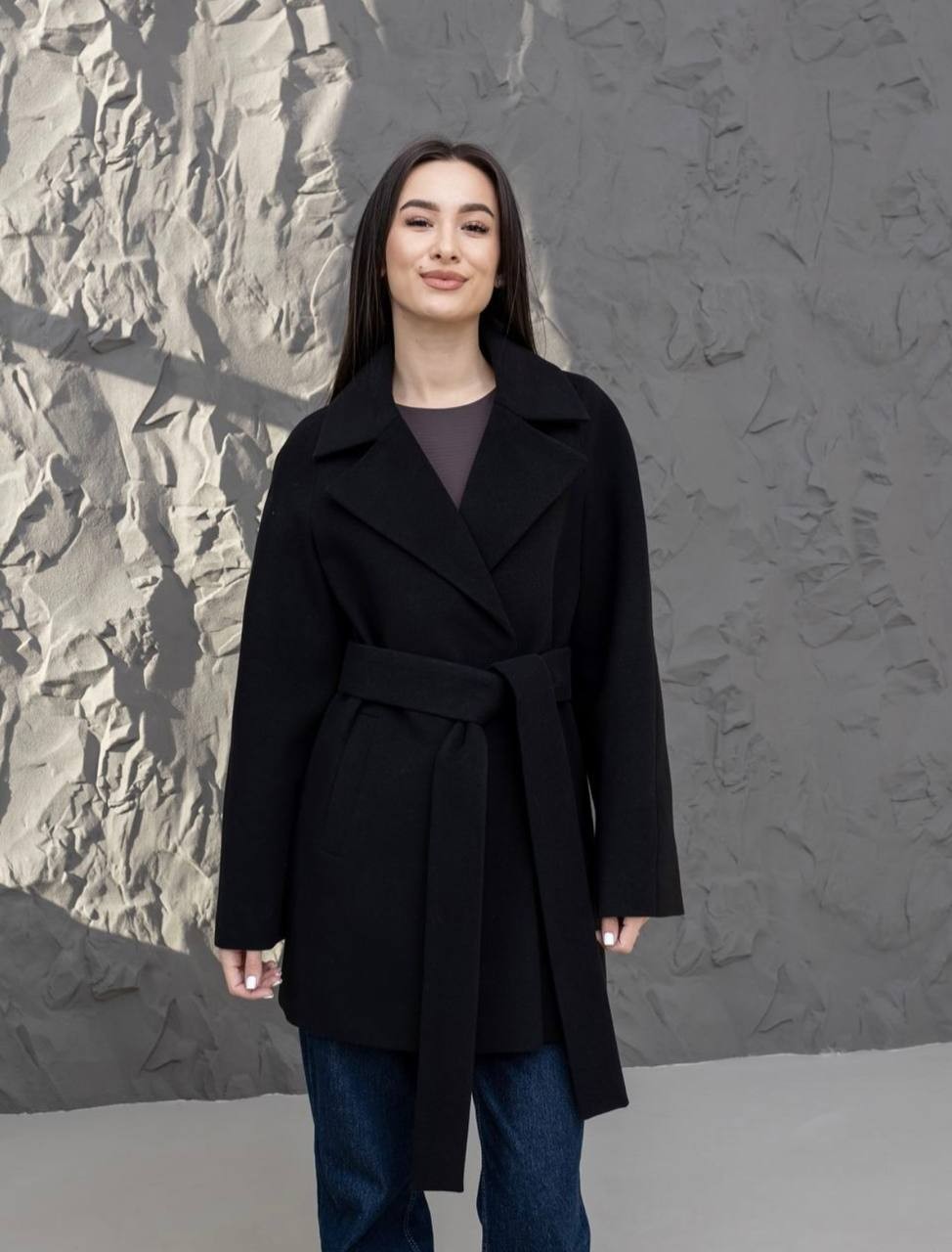 A demi-season coat with a length of 80 cm — a versatile piece for both everyday and more polished looks. Its clean cut and comfortable fit make it a practical choice for spring and autumn.