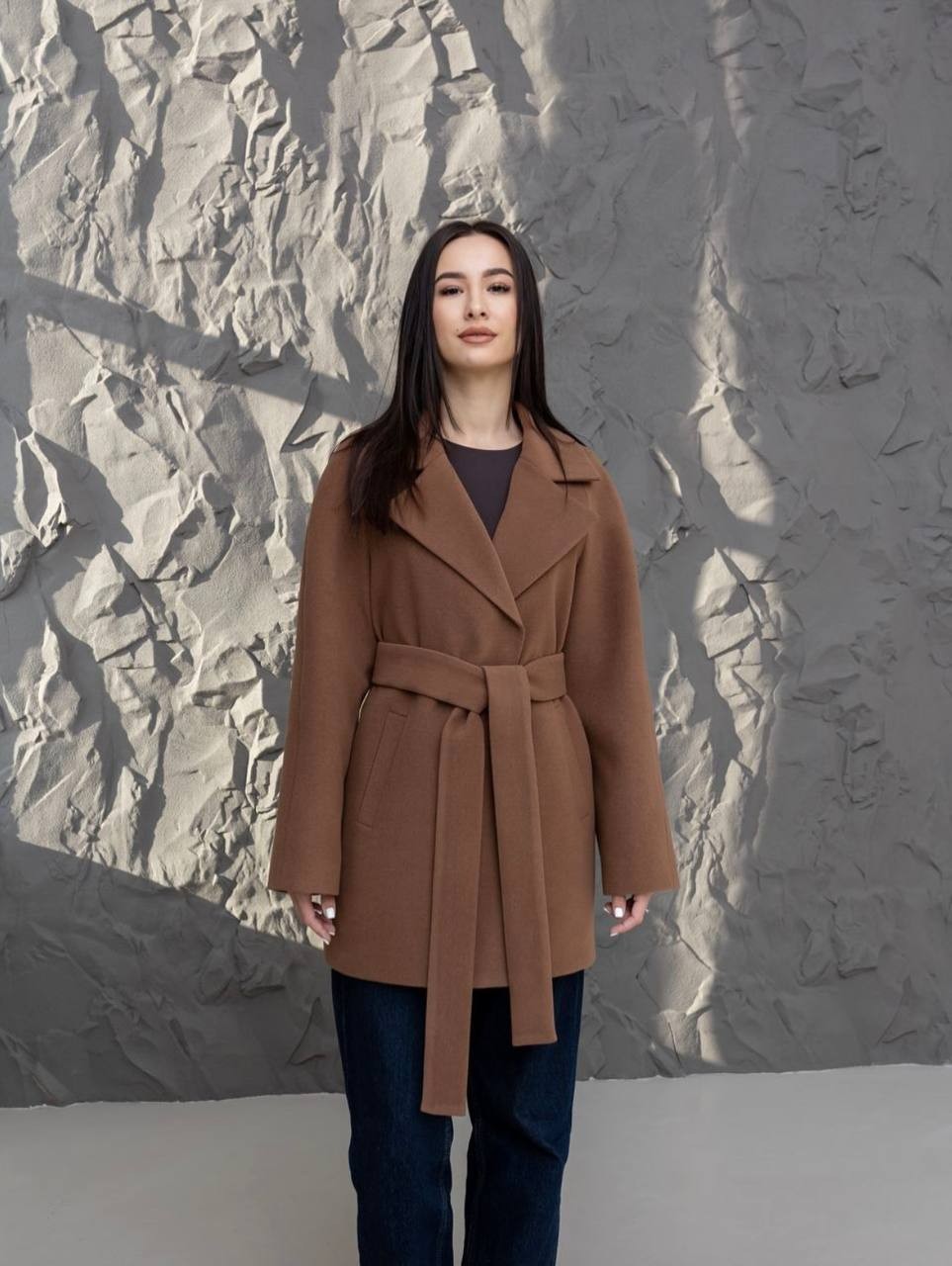 A demi-season coat with a length of 80 cm — a versatile piece for both everyday and more polished looks. Its clean cut and comfortable fit make it a practical choice for spring and autumn.