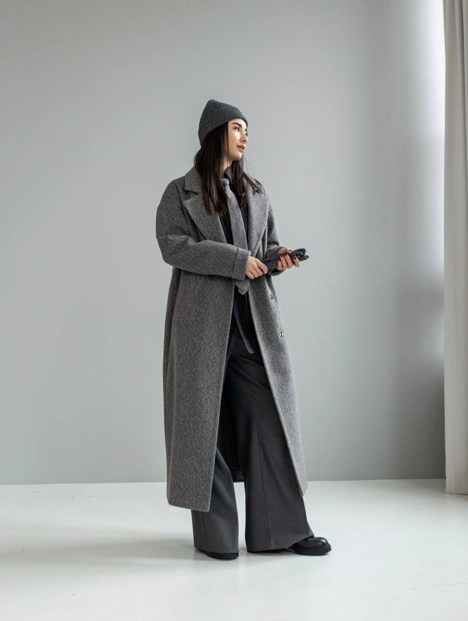 Пальто «Марсель» длины макси выполнено из ткани ангора диагональ. Элегантный силуэт, хорошая формоустойчивость и комфорт в носке. Серый цвет универсален и легко сочетается с повседневным и классическим гардеробом.