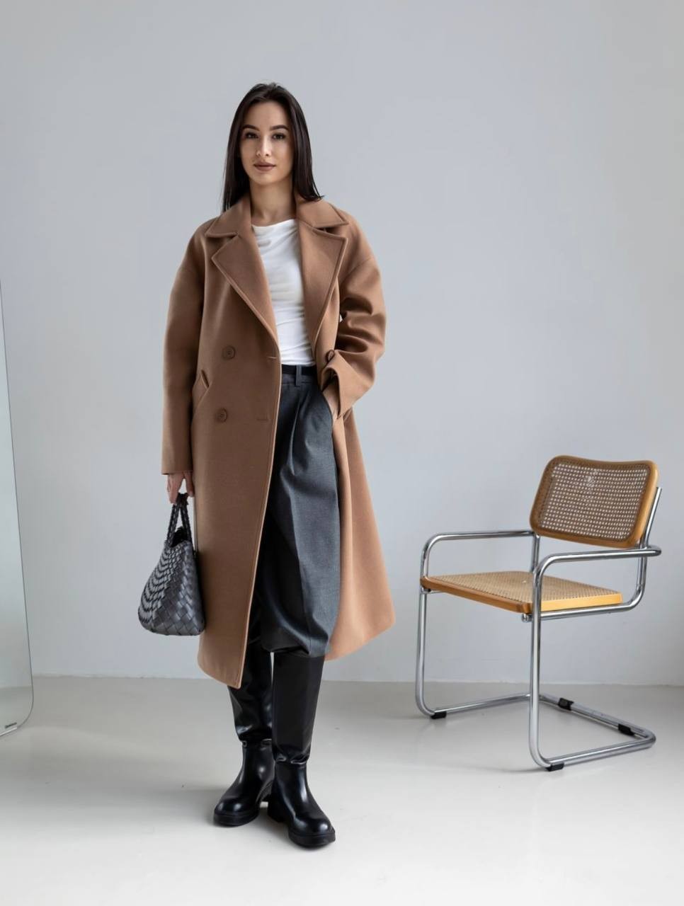Пальто Бруклін — сучасна інтерпретація класики. Оверсайз силует, двобортний крій і довжина міді створюють трендовий, але позачасовий образ. Пальто з кашеміру легко поєднується з будь-яким стилем — від ділового до повсякденного. Ідеальне рішення на демісезон.
