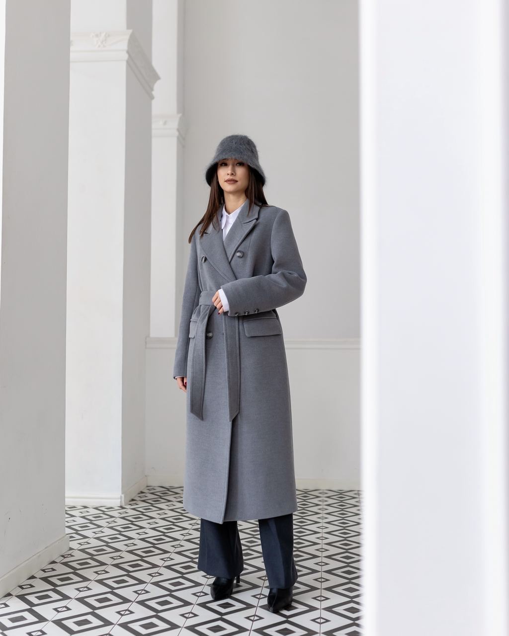 Кармен — витонченість довгого силуету та актуальна класика сезону. Довжина 125 см, лаконічний крій із поясом та зручними кишенями створюють стриманий, елегантний образ. Кашемір дарує комфорт, а довгий фасон додає пальту вишуканості й жіночності. Ідеальний вибір для міжсезоння.